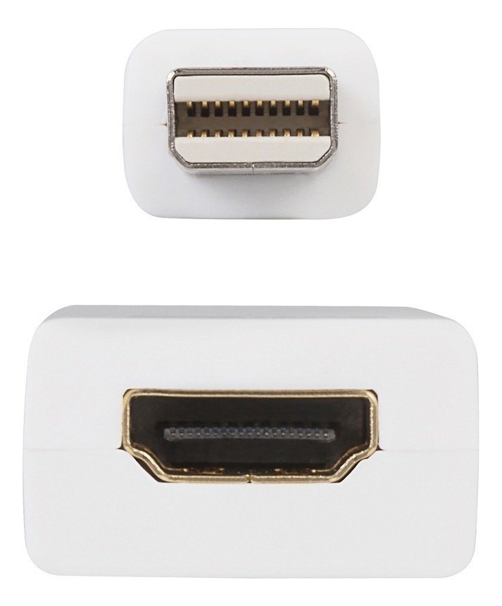 – Adaptador Mindisplay Port (Thunderbolt) a HDMI, reproduce audio y video desde el puerto Minidisplay port a través de un cable HDMI a otro dispositivo con entrada HDMI