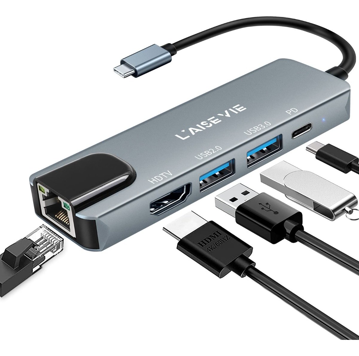 sumérgete en la calidad visual con el puerto HDMI de alta definición, conecta dispositivos adicionales con los puertos USB, y carga de manera eficiente con la tecnología Power Delivery (PD). Su diseño compacto y portátil lo convierte en el complemento perfecto para tus dispositivos tipo C, brindándote una conectividad sin esfuerzos en cualquier entorno. Con nuestra solución 5 en 1, estarás equipado para trabajar, jugar y disfrutar del entretenimiento con la máxima velocidad y versatilidad, todo en un solo dispositivo.»