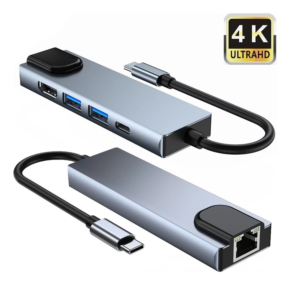 Experimenta la máxima conectividad con nuestro adaptador tipo C 5 en 1 de alta velocidad, el compañero esencial para potenciar tu experiencia digital. Este versátil dispositivo te ofrece cinco puertos esenciales en uno: disfruta de una velocidad de hasta 1000 Mbps con el puerto RJ45 para una conexión Ethernet ultra rápida y estable