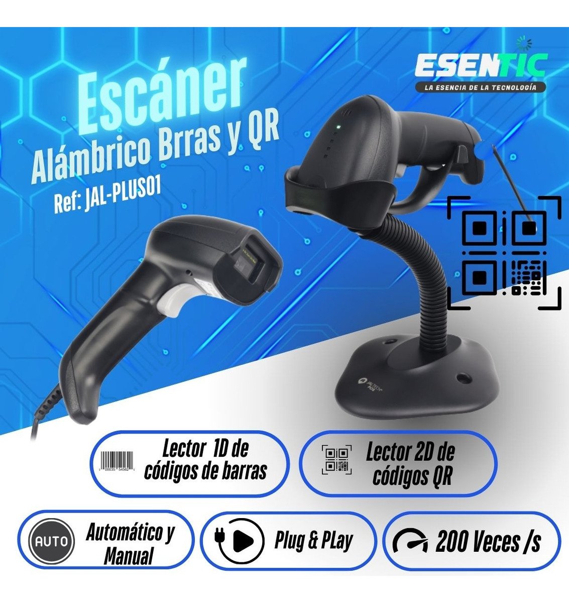 Contenido escáner, soporte, cable y manual