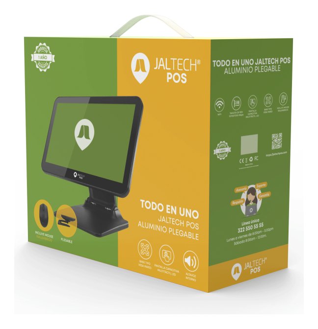 Con un diseño compacto y elegante, el JALTECH POS ocupa poco espacio en su mostrador, con dimensiones de 44 cm de ancho, 38 cm de altura y 19.5 cm de profundidad. Su peso de 5.25 kg lo hace fácil de mover y reubicar según las necesidades del comercio.