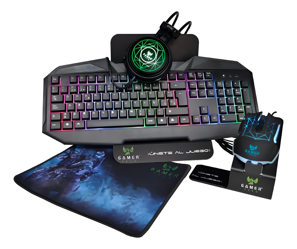 Combo Gamer Tech De Lujo 4 En 1 Gt2c Rgb En Español Teclado Negro