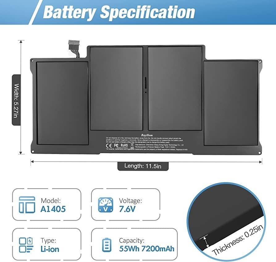 – Solo es compatible con Apple MacBook Air de 13,3 pulgadas A1369 (EMC 2469) (mediados de 2011), A1466 (EMC 2559) (mediados de 2012), A1466 (EMC 2632) (mediados de 2013, principios de 2014) y A1466 (EMC 2925) (principios de 2014).