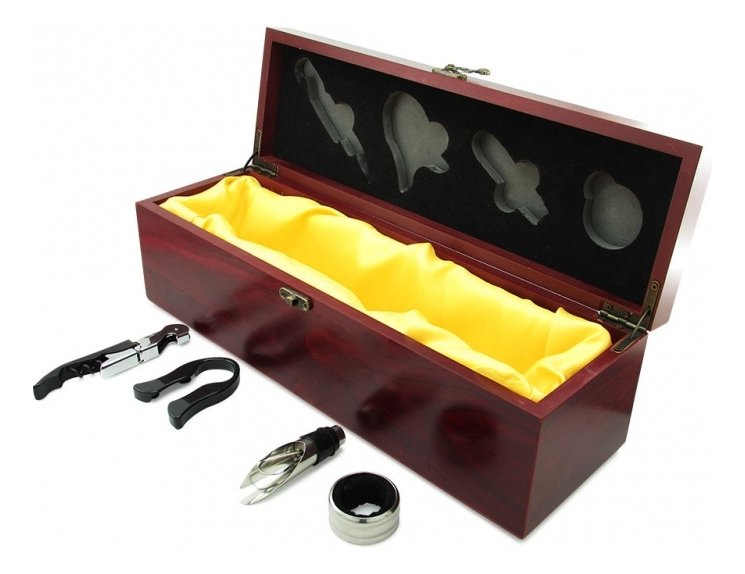 Este Cofre de Vino con 4 Artículos no solo es un regalo extraordinario para los conocedores del vino, sino también una adición imprescindible para tu propia colección. Celebra y disfruta de tus momentos especiales con este conjunto completo que combina funcionalidad y elegancia.