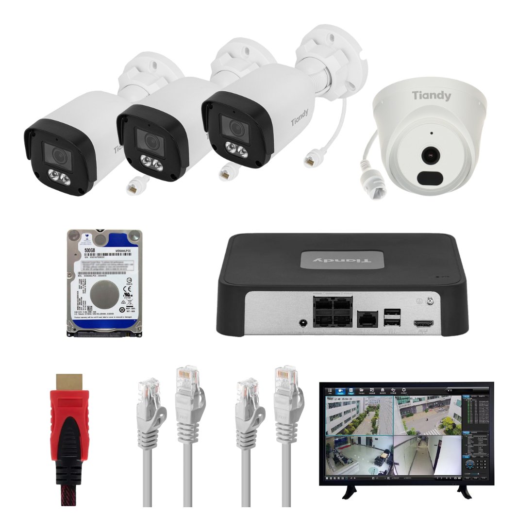 Kit Vigilancia Tiandy Ip 4 Camaras Poe 2mp Nvr Disco 500gb