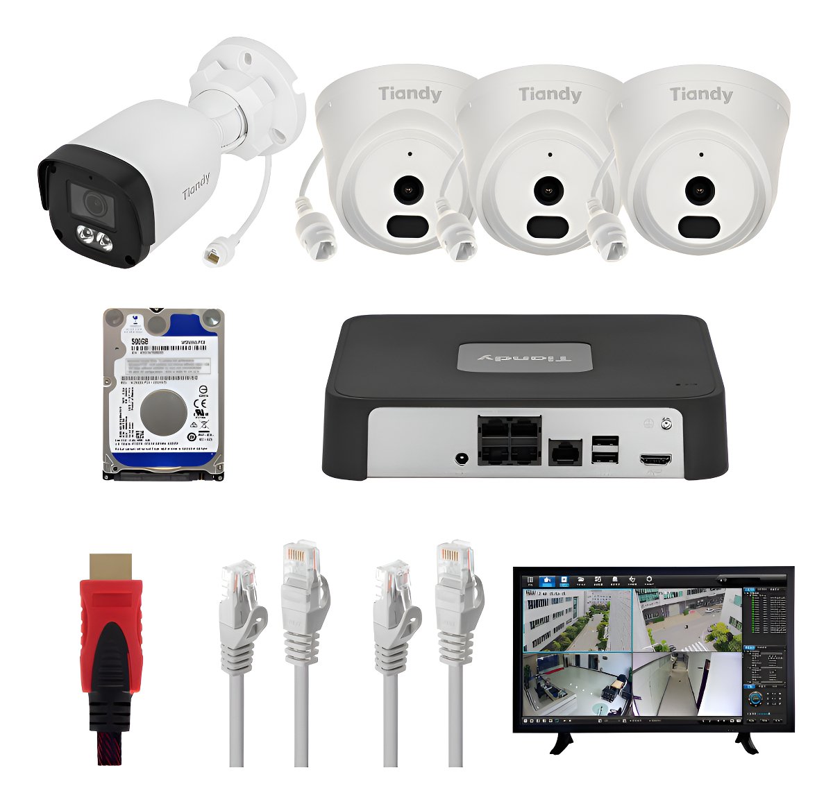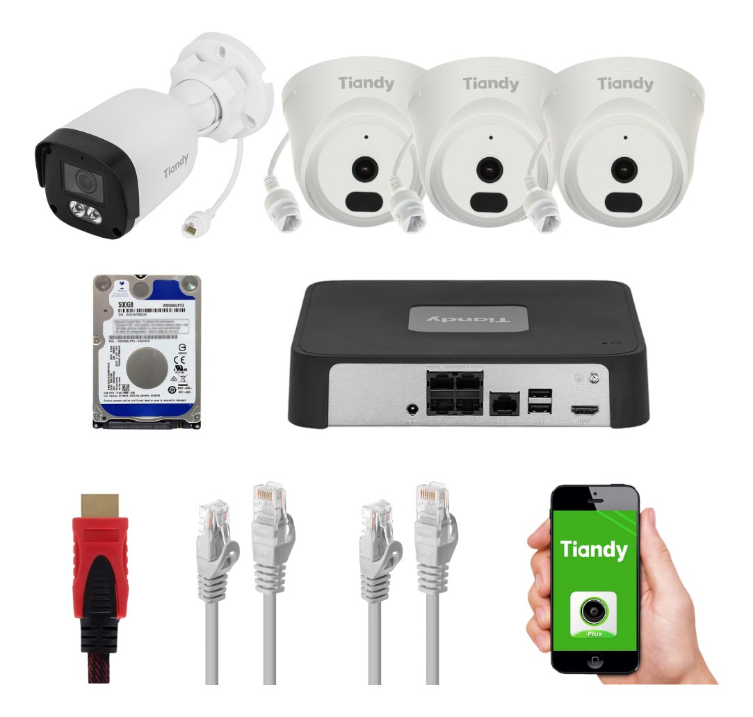 Kit De Seguridad Tiandy Ak 4 Cámaras Ip 2mp Poe, Nvr, 500gb