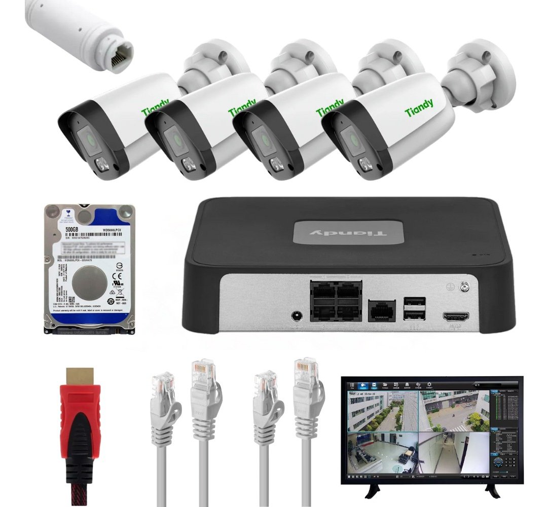 Kit De Vigilancia Tiandy Ak 4 Cámaras Ip 2mp Poe, Nvr, 500gb