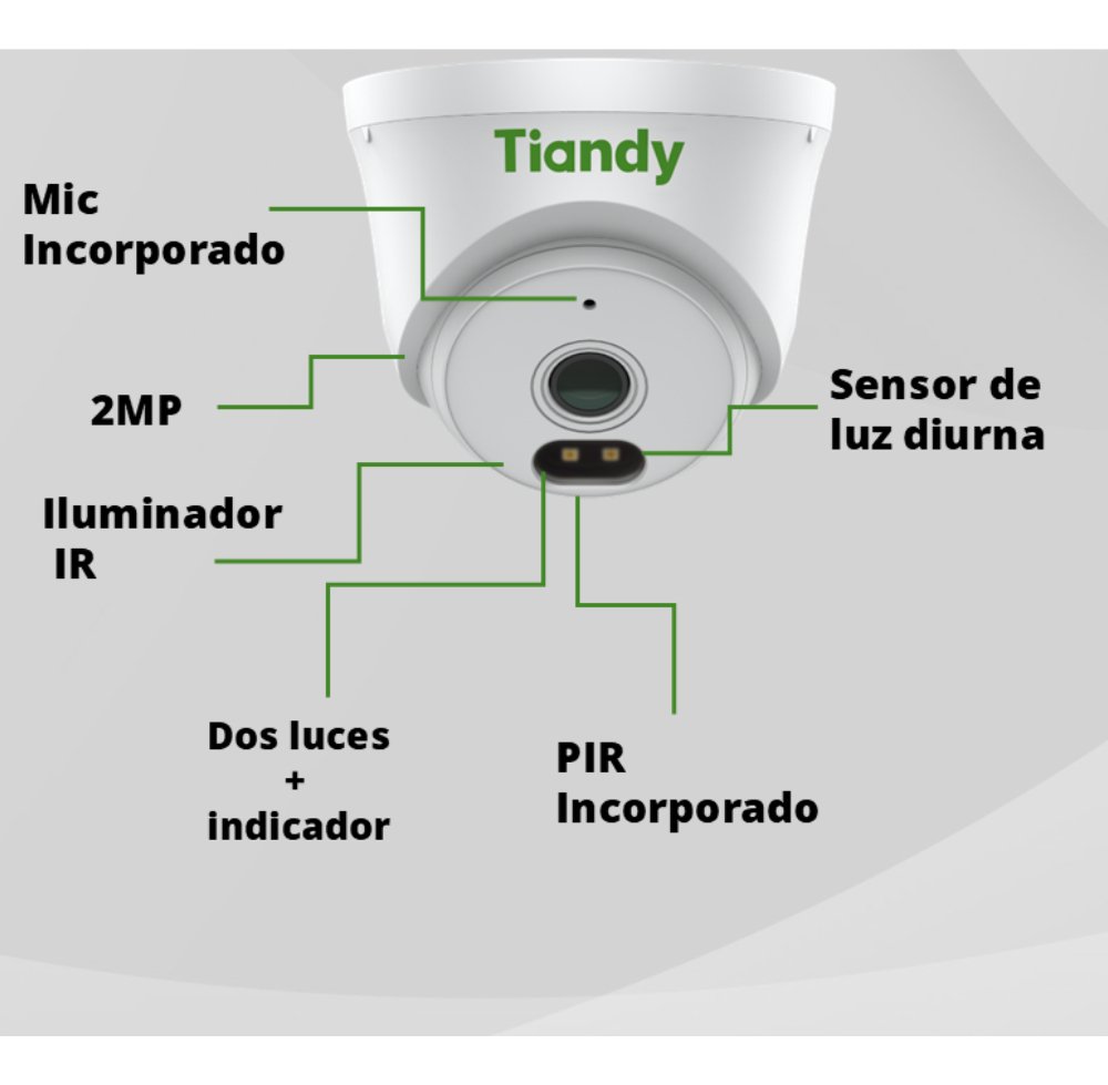 4 Cámaras IP Tiandy metálicas con plástico de 2MP – Alta durabilidad