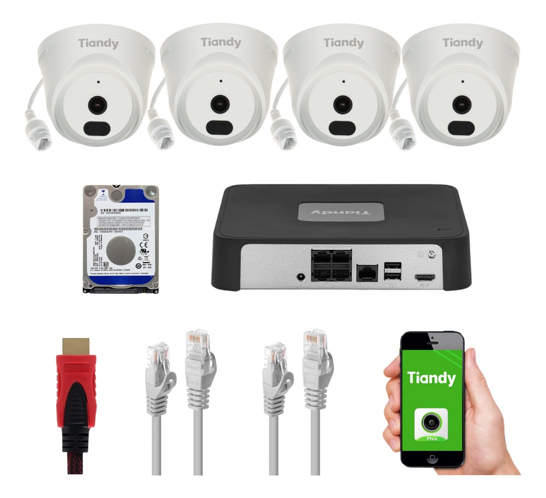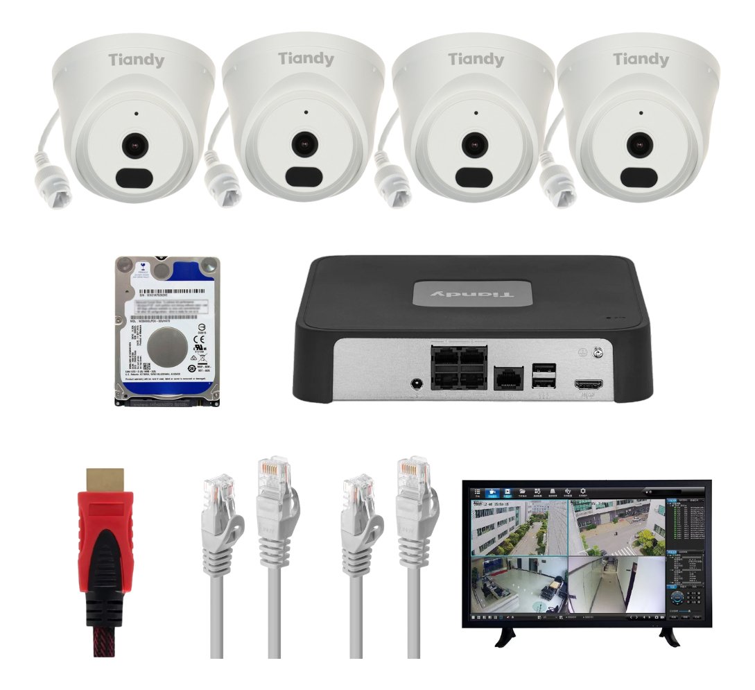 Kit De Vigilancia Tiandy Ak 4 Cámaras Ip 2mp Poe, Nvr, 500gb